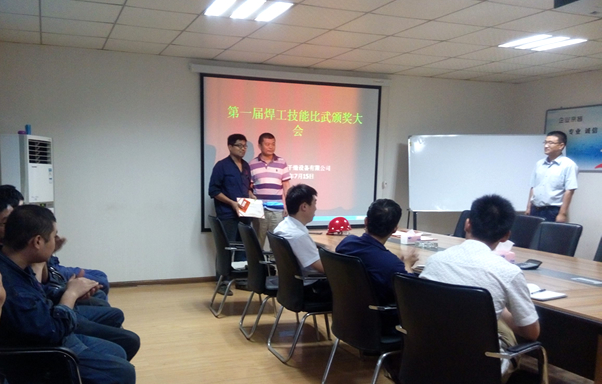 為了適應東鼎機械公司快速發展的需要,公司對技術人才的技能更加重視,為了選拔優秀的技能人才,7月中旬公司行政部門經過充分的組織準備面對公司一線生產員工展開了了東鼎首屆焊工技術比武活動,也為了激發一線員工學習意向,提高員工技能水平。2015年7月15日下午,東鼎首屆焊工技術比武活動拉開序幕,在鄭州東鼎機械一號生產車間所有參賽人員齊聚一起,摩拳擦掌,準備大顯身手,大家斗志昂揚,激情滿滿,準備一決高下。