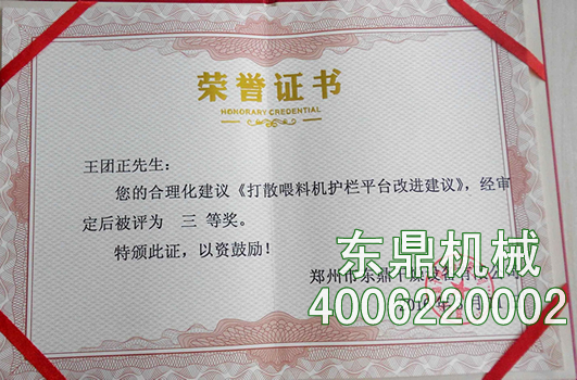 人盡其才,發(fā)揮員工主動創(chuàng)新能動性,2016東鼎機(jī)械已陸續(xù)收到來自各崗位關(guān)于產(chǎn)品、技術(shù)、管理等合理化建議30多條,經(jīng)評估跟蹤采納10多條,近期我司王工針對泥料打散機(jī)護(hù)欄平臺提出的合理化建議經(jīng)過公司評審?fù)ㄟ^,公司對于王工的建議非常重視,通過該建議改進(jìn)給客戶提供了更加便捷安全的體驗(yàn)和服務(wù),收到客戶廣泛好評。東鼎機(jī)械公司通過合理化建議的實(shí)施充分的激發(fā)了每一個員工的自主創(chuàng)新能力,也給公司的發(fā)展帶來了新能量。